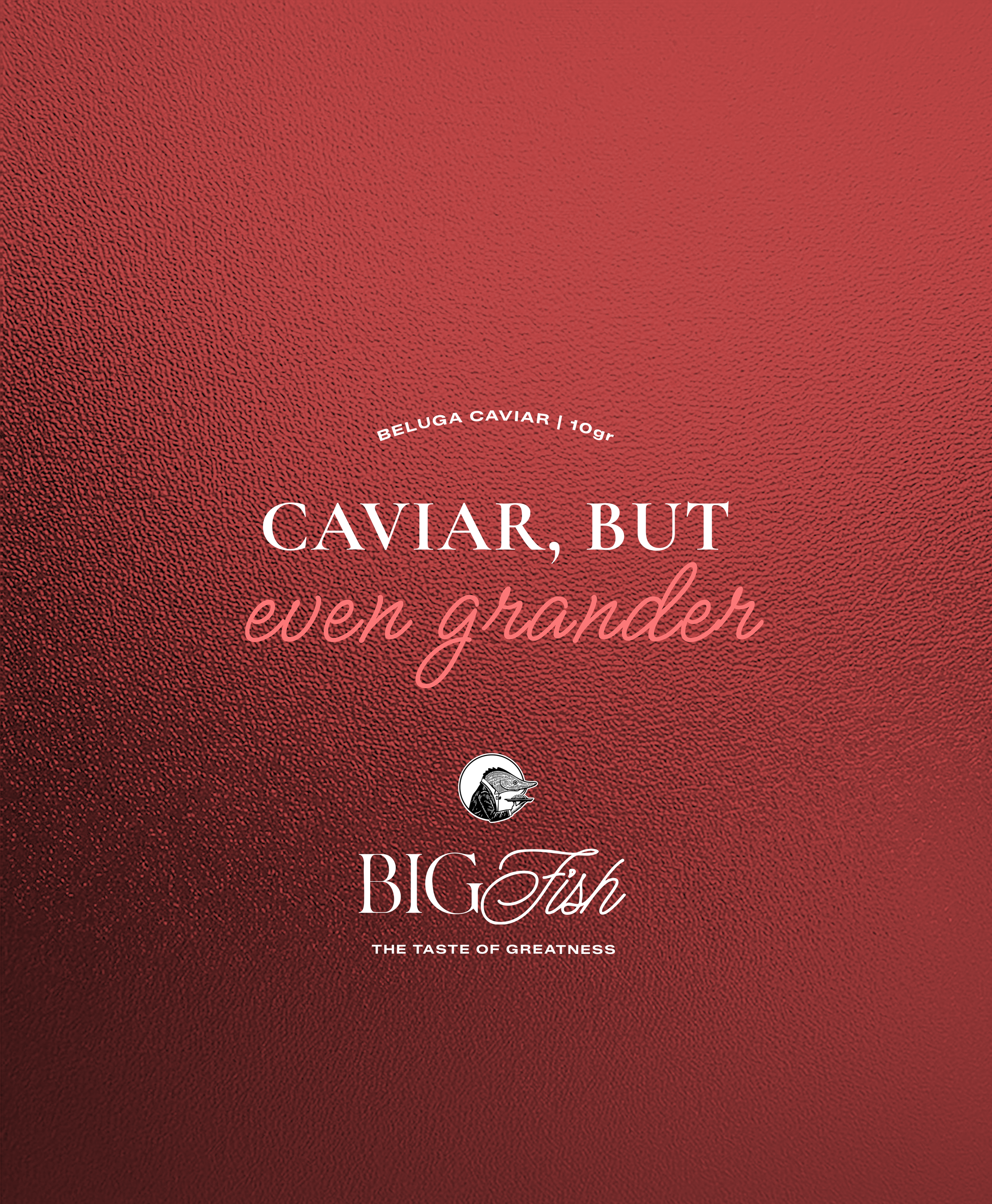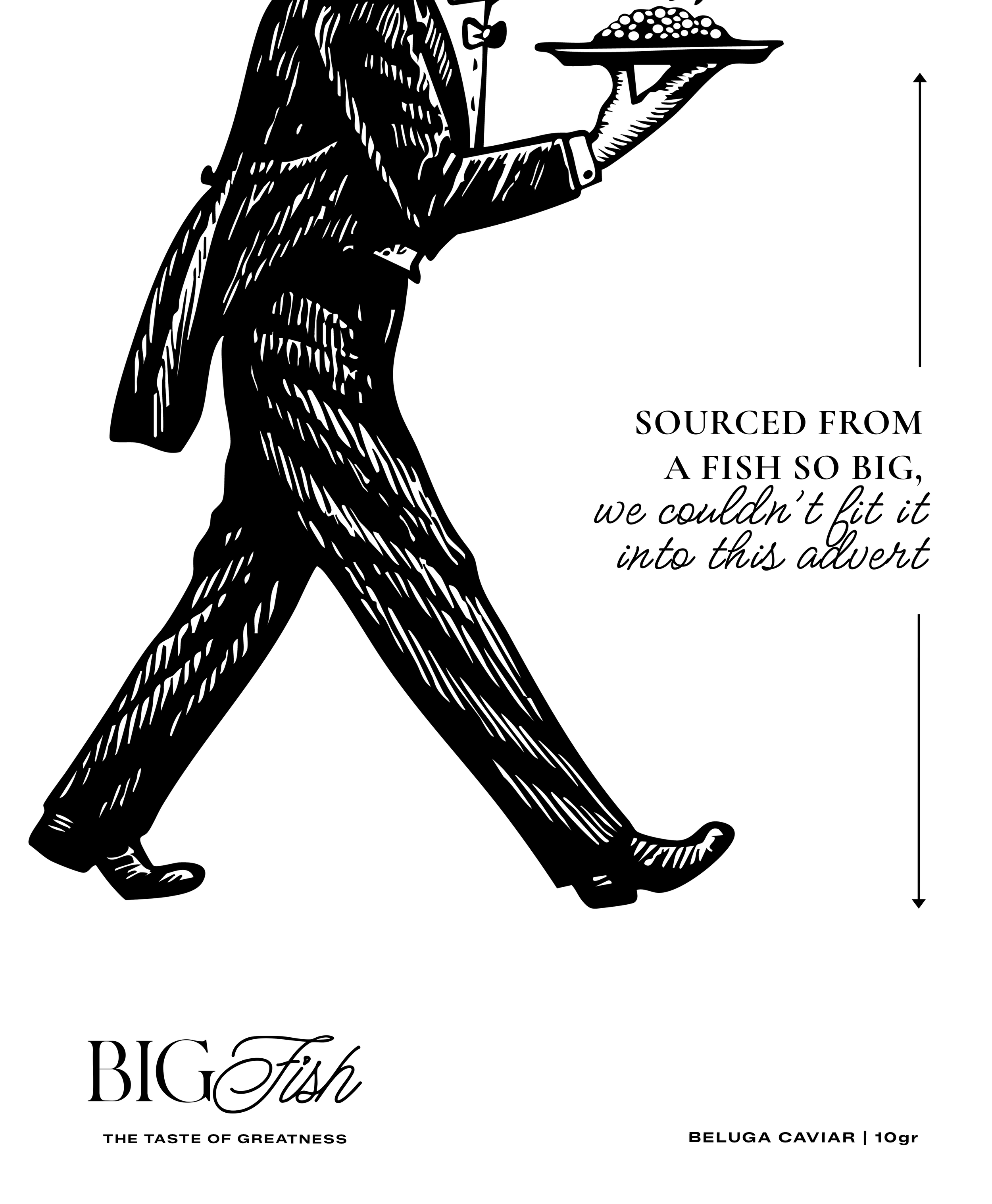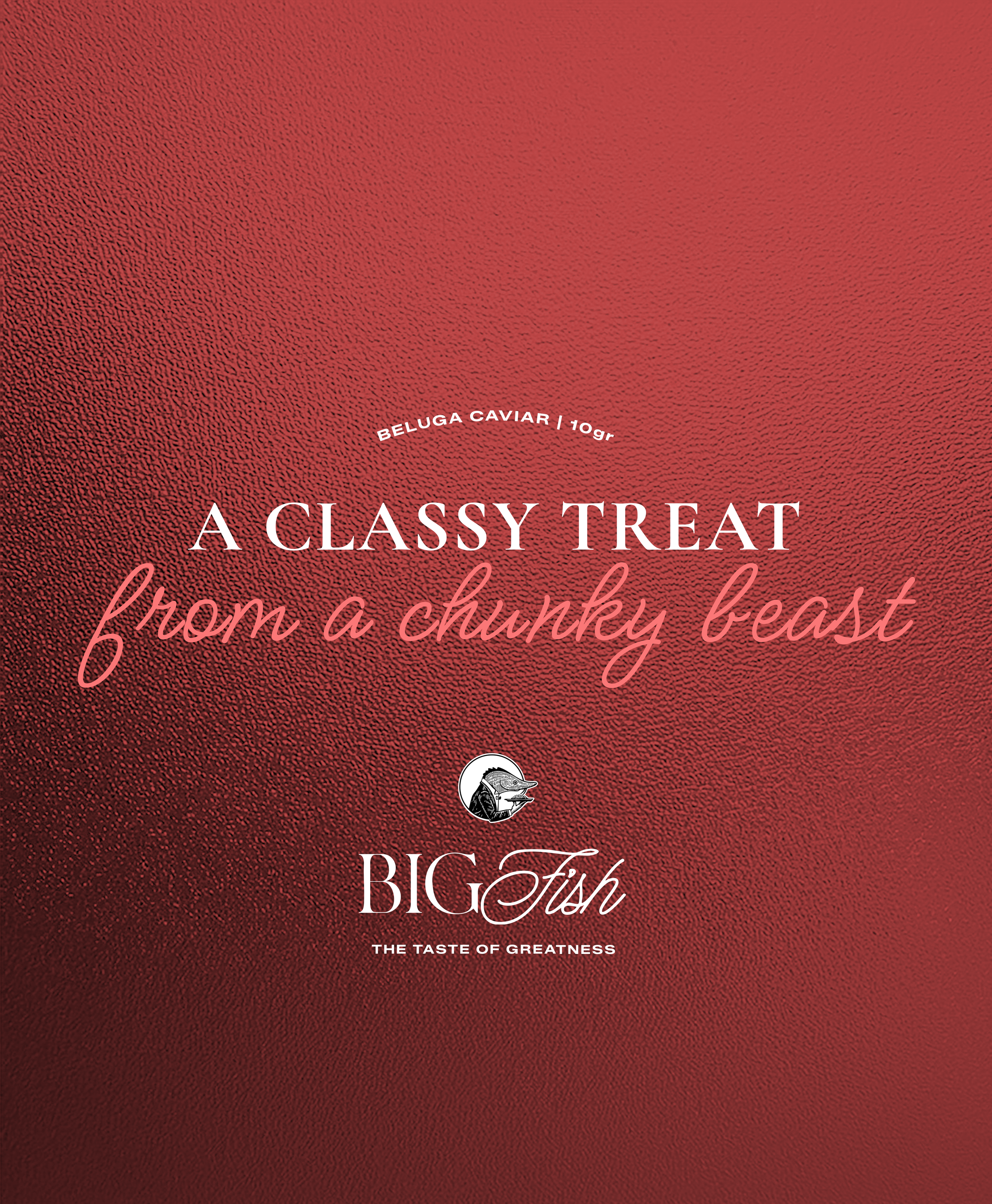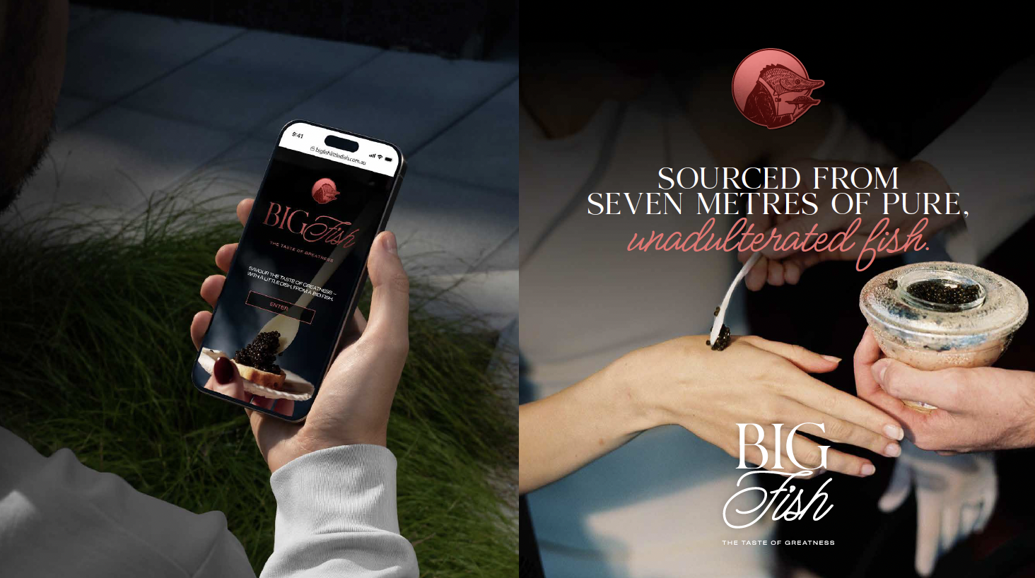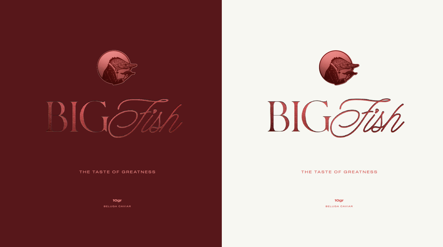 Caviar branding can be insipidly bland. To serve up some personality in a stuffy category, we created Big Fish. The identity focuses on the sheer scale of the animal that the caviar comes from, the beluga sturgeon, which can grow to seven metres long, weighs over a ton and swam with the dinosaurs all the way back in the Jurassic Period.